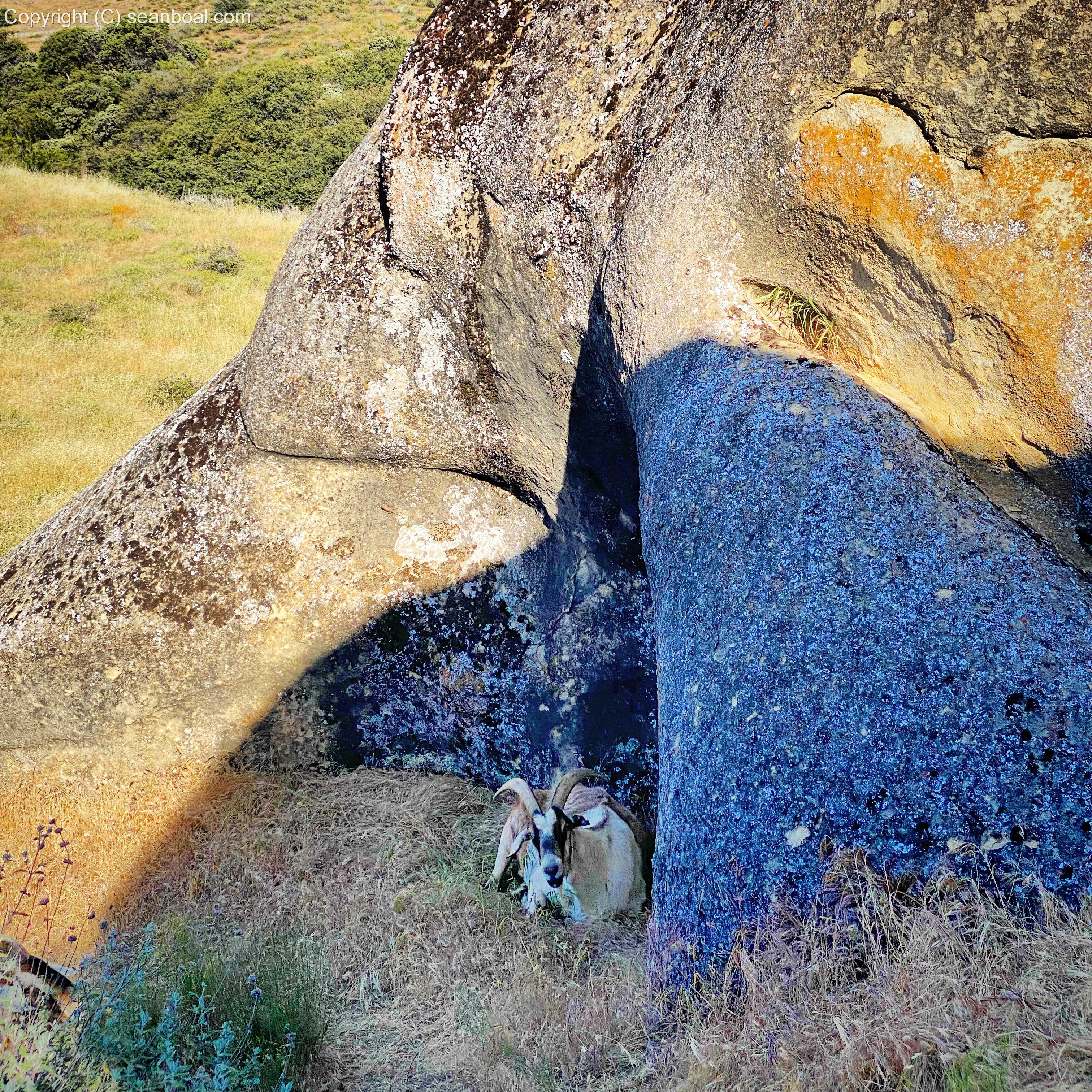 The beginner hike was a good starting point to get familiar with what hiking with goats is all about. Basically, the goats hike with you and carry the provisions for the trip. In our case, the goats were packed with a first aid kit, binoculars, a phone charger, water, and all the fixings to make tasty mocktails. During the hike, our guide, Sam, told us about the history of the area and taught us about the many uses of the local foliage. At the midway point, we enjoyed ice-cold mocktails and took in the view of the valley while resting on the side of the mountain among a rock outcropping.